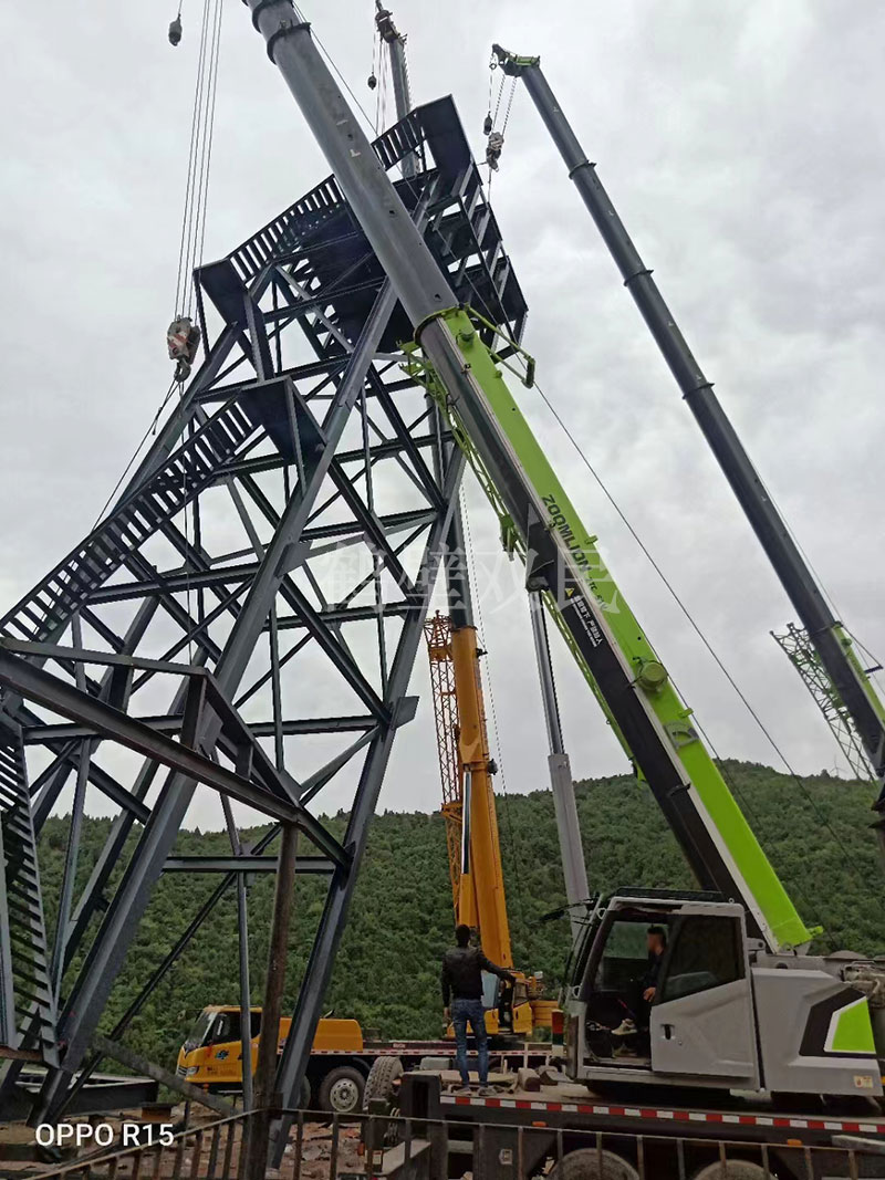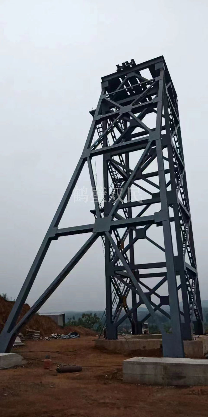 斜撐式永久井架主要特征和優(yōu)點(diǎn): 單斜撐式井架是隨著落地式多繩地上計(jì)技術(shù)發(fā)展而產(chǎn)生的,具有造型獨(dú)特,結(jié)構(gòu)簡(jiǎn)單,受力合理,工程量少,經(jīng)濟(jì)實(shí)用,技術(shù)進(jìn)步的特點(diǎn)。