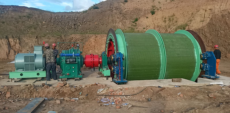 礦井提升機(jī)主要用于牽引煤礦等輔助加工工作,煤礦等礦山,道路傾角小于30度。電機(jī)通過(guò)減速機(jī)提供滾筒轉(zhuǎn)矩,鋼絲繩纏繞在線圈上,剎車裝置控制運(yùn)行并停止運(yùn)行,達(dá)到調(diào)度加工的目的。