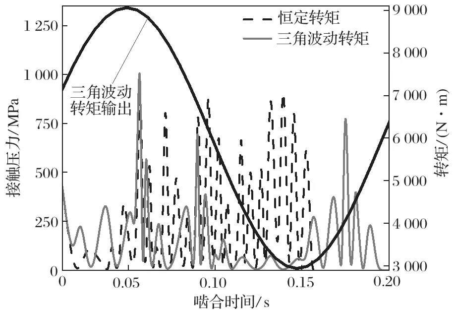 圖10 恒定轉(zhuǎn)矩與三角波動轉(zhuǎn)矩接觸壓力的對比